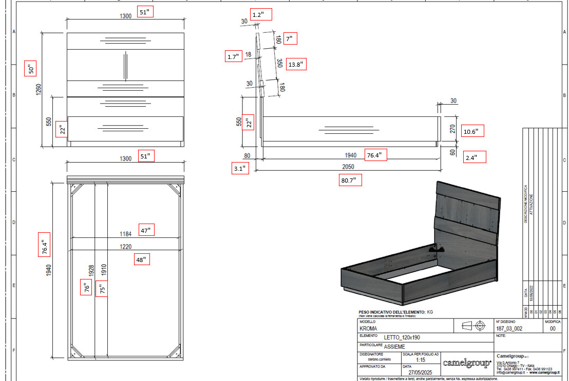 Kroma Sand Birch 48" Bed - More Images and Dimensions