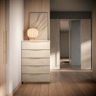 The Denali night collection meets the needs of the most demanding and refined customers. Soft, rounded lines are achieved by utilizing sophisticated technologies eliminating corners and geometric sharp lines. Sand gloss finishes imbue a warm atmosphere in the bedroom.