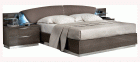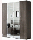 New Silver Birch finish to mark the unique, highly contemporary design of this bedroom PLATINUM. Modern lines combined with Art Deco’ details. Beveled mirror and wave shaped handles give a typical Made in Italy look to this bedroom. Padded in Eco-Leather headboard “CRAP” with vertical central Swarovski insert, side courtesy lights and lateral glass shelves. The bed ring has shaped side rails with chromed skirt and is